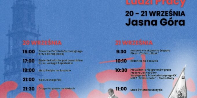 Zbliża się 43. Ogólnopolska Pielgrzymka Ludzi Pracy na Jasną Górę. Tradycyjnie ma ona miejsce w trzecią sobotę i niedzielę września. W tym roku odbędzie się więc 20 i 21 września.